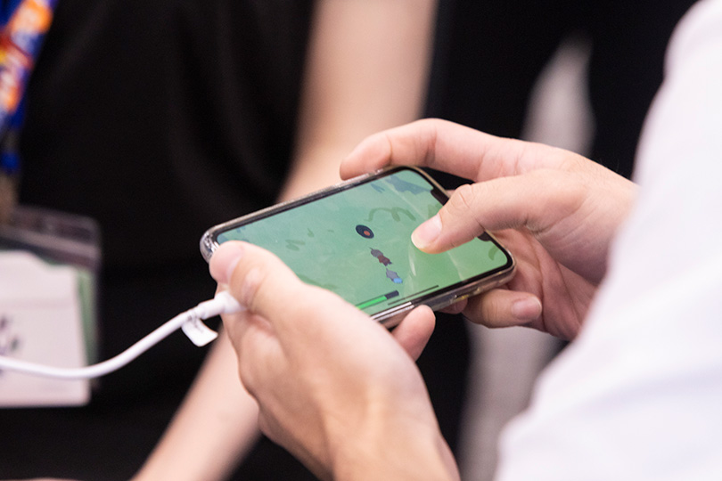 最終審査は、スマートフォンにビルドしたモックアップを全チーム分、審査員が初見でプレイして評価を決めていきます。審査員は、グリーエンタ―テインメント株式会社 代表取締役社長を務め、『ヘブンバーンズレッド』プロデューサー 通称「柿P」としても知られる柿沼さんです。