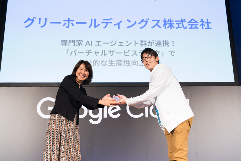 Google Cloudが主催し、Google CloudやGeminiなどの生成AI技術を活用した、企業・組織の課題解決に資する革新的な事例を表彰するイベント。多数の応募の中からファイナリストが選出され、最終審査(ピッチコンテスト)では生成AI活用の「革新性」「社会的インパクト」「将来性」を基準に、最優秀賞・優秀賞を決定します。第4回の大会で、グリーホールディングス株式会社の情シスはファイナリストに選出され、見事、優秀賞を受賞しました。
