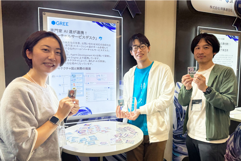 2025年10月に開催された「Google Cloud 第4回 生成 AI Innovation Awards(現:生成AI事例アワード)」にて、グリーホールディングス株式会社 情報システム部(以下、情シス)が開発した社内向けマルチAIエージェントシステム「バーチャルサービスデスク」が見事、優秀賞を獲得しました。AIエージェントの代表キャラクターである「イルカちゃん」は、単なる業務効率化ツールを超え、社員に愛される存在となりつつあります。ここでは開発の経緯や、その裏側の努力を紹介するとともに、AIという最新技術をどう捉え、向き合っているか、AI活用推進チームの皆さんに伺いました。